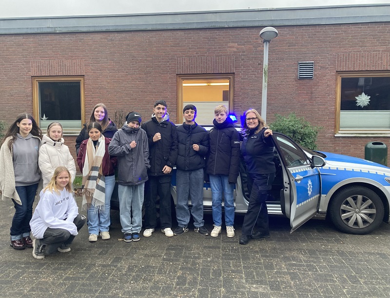 Die Schüler:innen bekamen Tipps, wie sie besser Konflikte schlichten könnten und Frau Schwarzbeck erzählte, wie Auseinandersetzungen bei der Polizei geklärt werden. Es wurden etwa 11 - 12 Fragen gestellt, die auch alle beantwortet wurden. Außerdem durften sich die Streitschlichter:innen den Streifenwagen ansehen und sich auch hineinsetzen.
