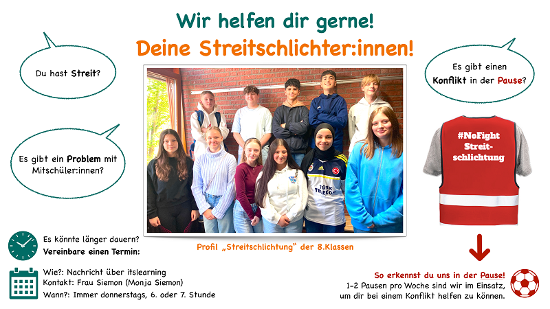 Das Profil der Streitschlichter:innen wird im 8. Jahrgang angeboten.