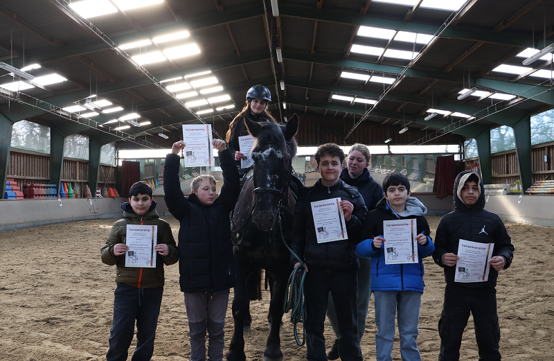 Das Reitprojekt der 7b feierte mit einer Urkundenübergabe einen Abschluss des wöchentlichen Reitens. Sie präsentierten ihr Können auf dem Pferd vor ihren Eltern und der großen Klasse.