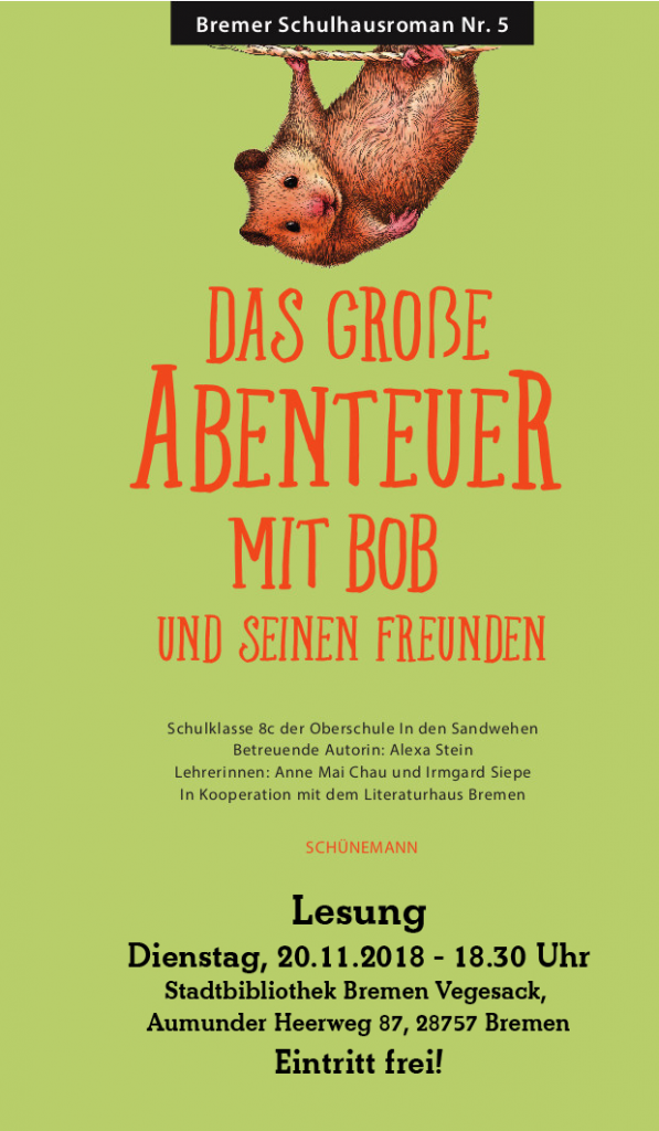 Die Schulklasse 9c aus der Oberschule In den Sandwehen liest am Dienstag, den 20.11.2018, um 18:30 in der Stadtbibliothek Bremen Vegesack.