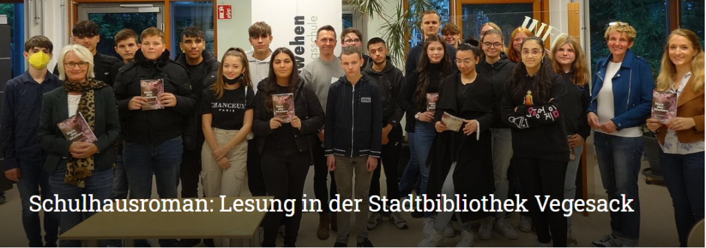 An einem Septemberabend lasen die Schüler*innen der Oberschule In den Sandwehen in der Stadtbibliothek Vegesack aus ihrem eigenen Werk Herz des Wetters vor. Ihre Geschichte ist der 12. Schulhausroman, der im Schünemann Verlag erschienen ist. Protagonistin ist die Schülerin N., die eines Morgens mit Hörnern aufwacht und ungeahnte Kräfte entdeckt. In dem Fantasy-Roman geht es um die Angst, in der Klasse keinen Anschluss zu finden. Beim Bremer Schulhausroman - Projekt erleben die Jugendlichen den Prozess eines schriftstellerischen Werks von Anfang bis Ende: die ersten Ideen und Charaktere entstehen, ein Spannungsbogen wird erzeugt, gemeinsam ein Titel entschieden und das Manuskript fertiggestellt.