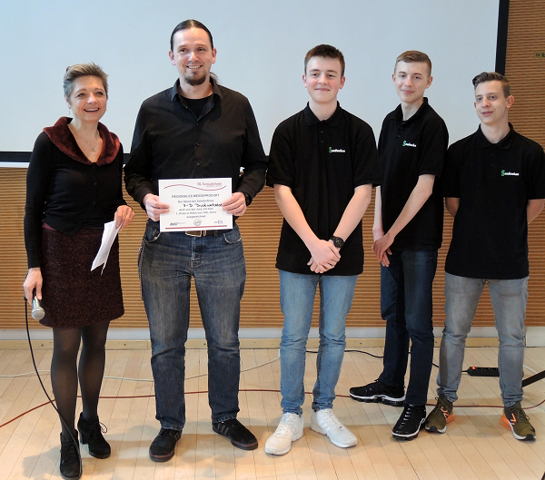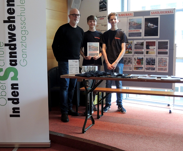 Zum 10. Mal veranstaltete das Landesinstitut für Schule seineSchülerfirmen-Messe. Diesmal im Bremer Metropol-Theater, das mit Ständen von rund 30 Schülerfirmen, Verbänden und Unternehmen sowie unzähligen Besuchern prall gefüllt war. Diesmal war unsere Schule mit 3 Firmen vertreten: Dem Nähstudio, der 3D-Druckwerkstatt und dem SANDJOURNAL. Viele der Besucher und ein Großteil der Juroren für die zu vergebenden Preise,zeigten reges Interesse. Das zeigte sich unter Anderem in den erfreulich hohen Einnahmen durch Verkäufe des Nähstudios. Schließlich wurden die 3D-Drucker um Lehrer Michael Planer sogar mit einem ersten Preis für ihre innovativen Produkte bedacht, überreicht von Marcella Dammrat-Tiefensee vom Verein der Findorffer Geschäftsleute.