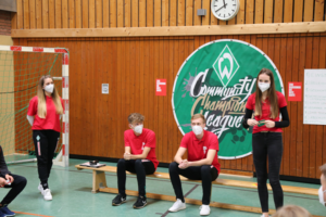 Im Rahmen der Community Champions League, der Fair-Play Fußballliga für Schüler*innen mit und ohne Beeinträchtigung an weiterführenden Schulen in Bremen, hat am 27. November 2020 einer von insgesamt vier begleitenden Workshops zu gesellschaftsrelevanten Themen in den Sandwehen stattgefunden. Die Schüler*innen der Klasse 6d haben sich an diesem Tag, gemeinsam mit dem Sozialpädagogen Jens Oldenborg und der Lehrerin Janntje Barkemeyer, in der Sporthalle mit dem Thema Rassismus auseinandergesetzt. Angeleitet und begleitet wurde die Klasse dabei von einem Werder Bremen-Team. Spielerisch erarbeiteten sich die Schüler*innen verschiedene Aspekte rund um das Thema Rassismus. Das Ziel des Workshops bestand darin, die jungen Teilnehmer*innen für Antidiskriminierungsthemen zu sensibilisieren und spielerisch das Bewusstsein für kulturelle Vielfalt und Inklusion zu schärfen.